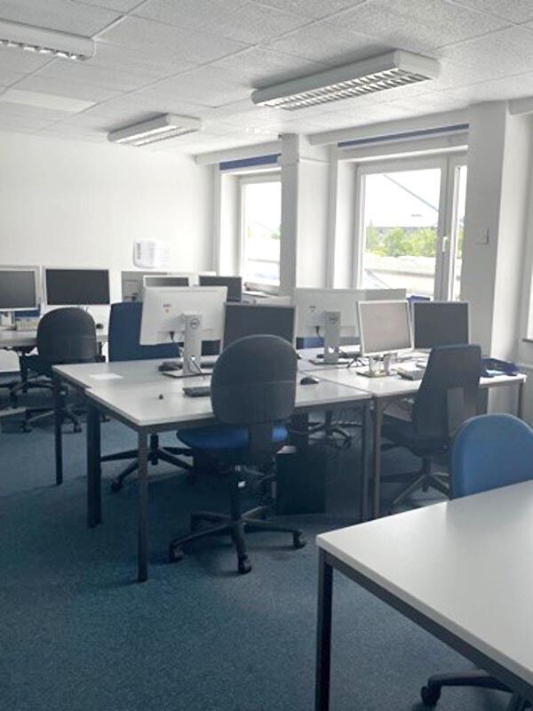 Ihre Schulungsräume befinden sich im ersten Stock eines früheren Fabrikgebäudes, das viel Charme versprüht. Das gepflegte Interieur, Teppichboden und durchgehende Fensterfronten sorgen für eine angenehme Arbeitsatmosphäre.