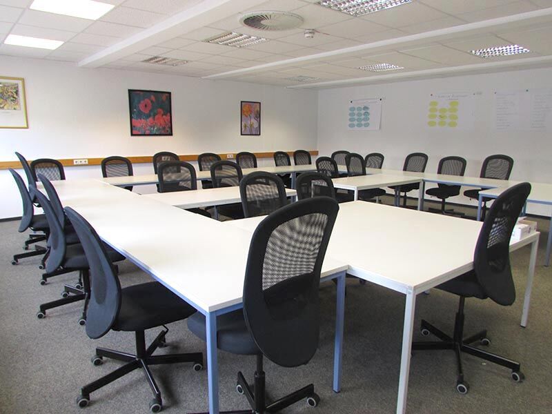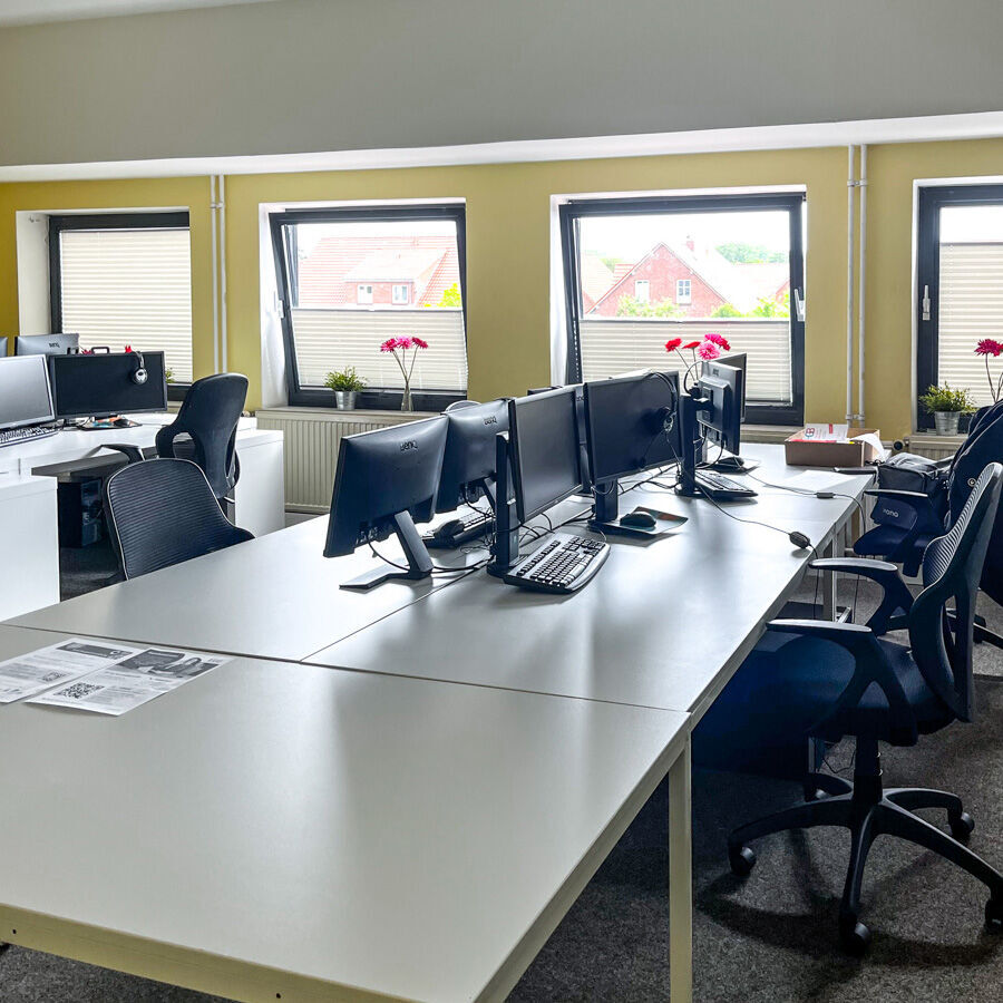 Sie finden das IBB Norden in der Rheinstraße 13, in ruhiger Stadtrandlage. Über eine große Treppe gelangen Sie direkt in unsere Räumlichkeiten im ersten Stock. Es erwarten Sie ein offener Empfangsbereich sowie unsere hellen Schulungsräume mit hochmodernen Computerarbeitsplätzen. Hier finden die Fortbildungen in ruhiger, familiärer Atmosphäre statt - täglich von 8 bis 16:15 Uhr. Für Ihre Pausen steht Ihnen eine kleine Teeküche zur Verfügung. Automaten für Kaffee und Kaltgetränke finden Sie im Gebäude, weitere Einkaufsmöglichkeiten befinden sich in fußläufiger Entfernung.